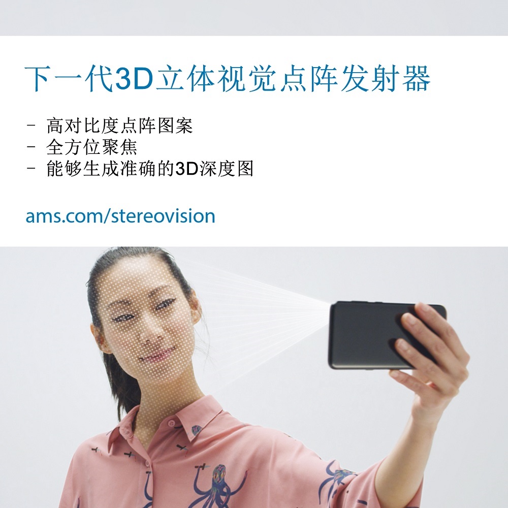 中国,2019年10月16日,全球领先的高性能传感器解决方案供应商艾迈斯半导体(ams AG,瑞士股票交易所股票代码:AMS)今日宣布推出全新的主动立体视觉技术产品组合,让消费电子、笔记本电脑和工业产品制造商能够以更低的成本,更轻松地实现脸部识别和其他3D传感应用。艾迈斯半导体在结构光、飞行时间和主动立体视觉 (ASV) 这三种 3D 传感技术领域均处于领先地位。
