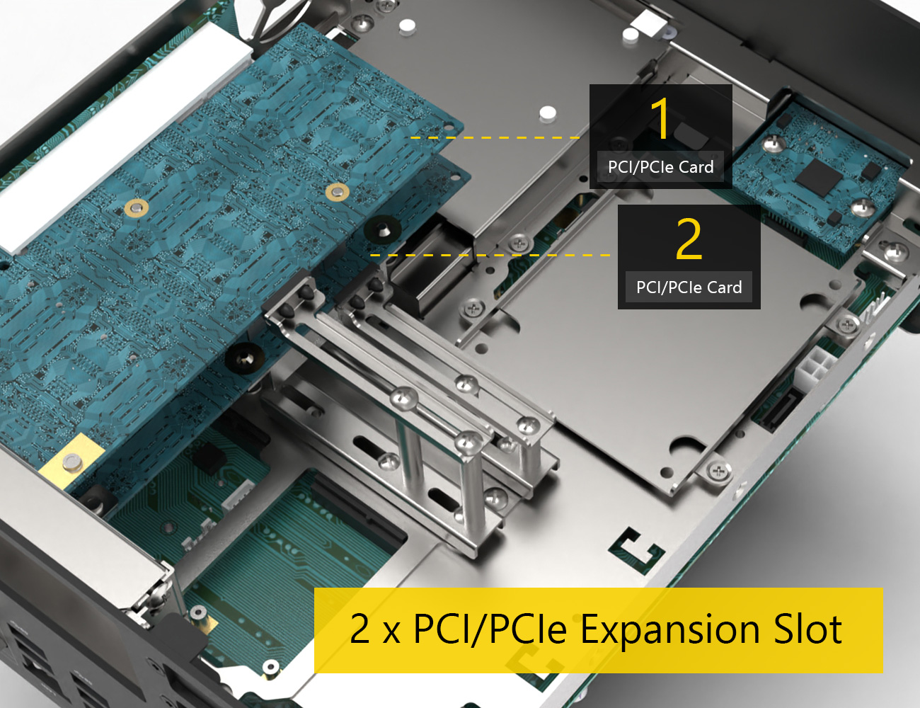 DS-1300系列至多可扩展两个PCI/PCIe扩展槽,并可提供110W功耗,可外接市售的各类高速I/O卡、影像撷取卡、运动控制卡或GPU显卡等。为强化扩展卡的安装稳固性,Cincoze专利设计的?可调式固定架?,透过两段式的精密调整功能,可依据安装的外接卡尺寸(可达235x111mm)紧密调整并加强锁固,在高震动环境下提供牢固的支撑,维持现场端安全可靠的持续运作。