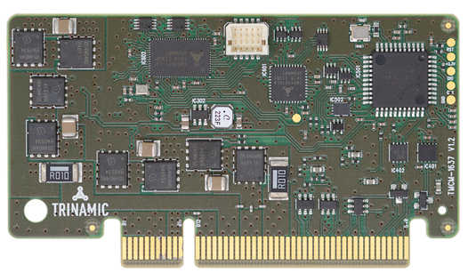 现场定向控制方案:Trinamic还提供5A RMS TMCM-1637和7A RMS TMCM-1638插槽式现场定向控制器/驱动器模块,为现场定向控制(或JRC矢量控制)增加霍尔或ABN编码能力。这些模块支持单相直流(DC)电机、两相双极步进电机和三相BLDC电机。