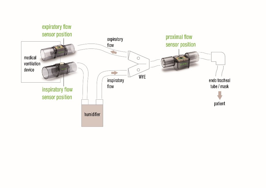 鉴于这些特点,SFM3xxx 平台上的传感器可满足医疗技术中所有气体流量的测量要求。这些传感器可广泛应用于多种医疗应用领域,如人工通风、麻醉、药物输送和代谢测量。例如,SFM3000、SFM3100 和 FM3200 质量流量计适用于吸气流量测量和气体混合,而耐高压、一次性使用的 SFM3200-AW、SFM3300 和 SFM3400 质量流量计则是呼气或近端流量测量的首选。